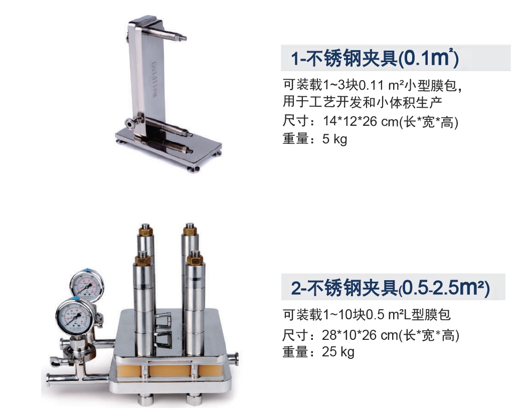 1.3m² 中試 / 生產(chǎn) 10L-50L 不銹鋼夾具(0.5-2.5m²)